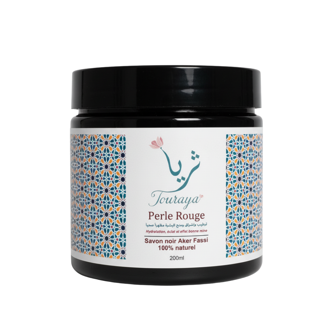 Élaboré dans notre laboratoire marocain selon les méthodes traditionnelles, le Savon Noir Perle Rouge Touraya sublime la peau tout en respectant son équilibre naturel.